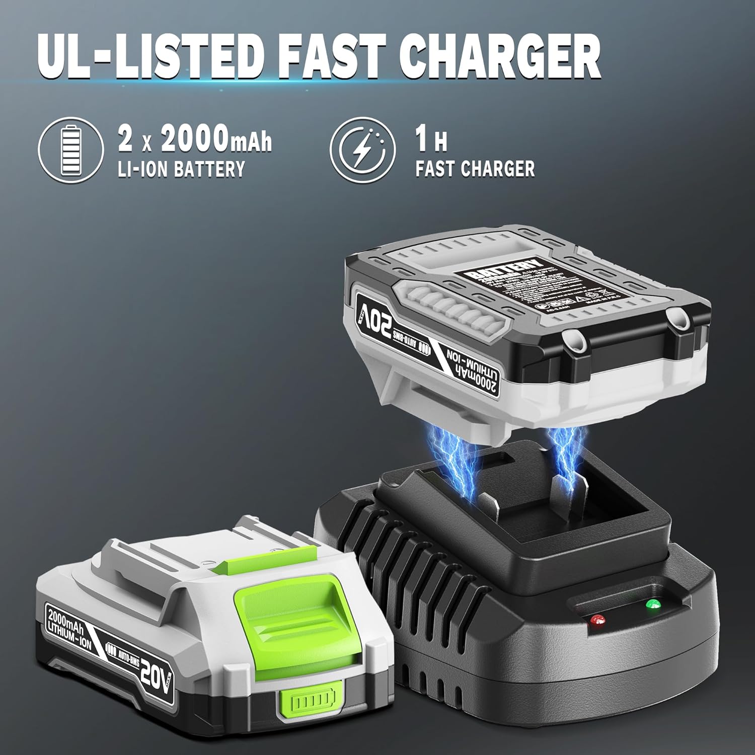 - Package Included: 1* Cordless String Trimmer, 1* Fast Charger, 2 * 2.0Ah Lithium-Ion battery, 1* User Manual,6* Replacement line