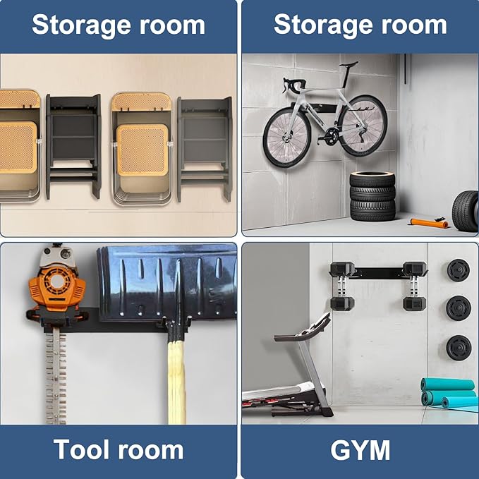 - Multi-Purpose Garage Wall Organizer -Not limited to folding chair, this heavy duty storage hooks can accommodate other items, such as garden tools, shovel, brooms, hoses, yard tool, etc. It can ensure that you are in a clean and tidy environment and improve your work efficiency.
