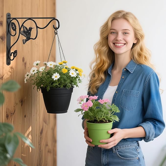 - 【Premium Rust-Proof Iron Construction】Crafted from heavy-duty, weather-resistant iron, our plant hooks are built to last. The reinforced triangular design provides superior stability, supporting up to 30 lbs—perfect for hanging flower pots, lanterns, and bird feeders without bending or rusting.