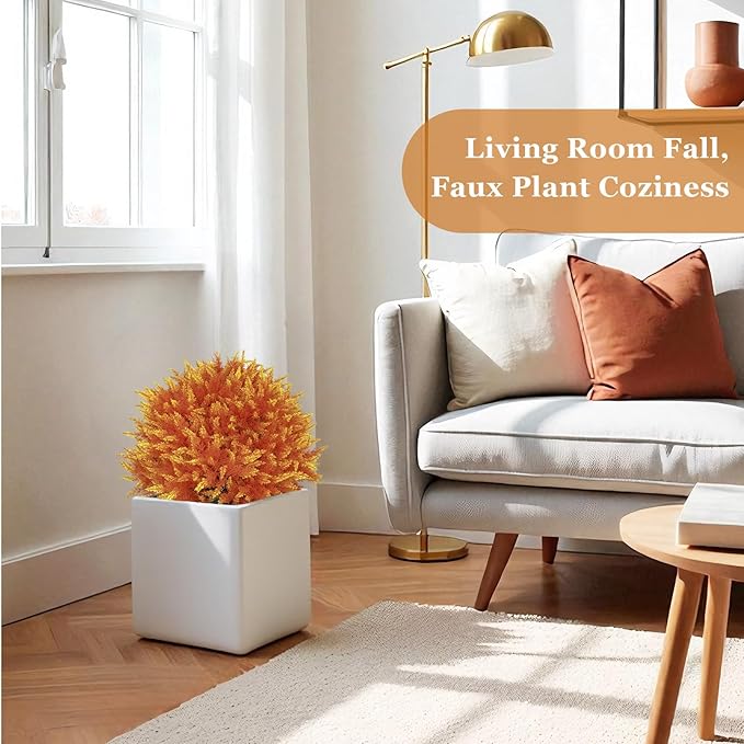 - 【UV Resistant & Weatherproof – Outdoor Durable】Made with UV-protected plastic, these artificial outdoor plants resist fading and cracking, even under autumn sun, wind, or rain. A long-lasting way to keep your fall décor bright and festive