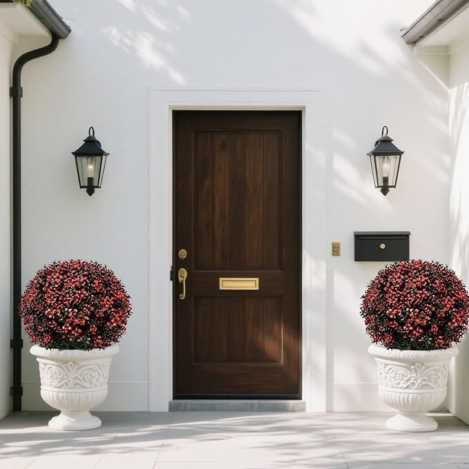 - 🌿Realistic Boxwood Topiary Ball Trees:made from high-quality materials for a natural look for year-round. Lifelike design:new red+green boxwood leaves like red flowers growing on the trees you planted.