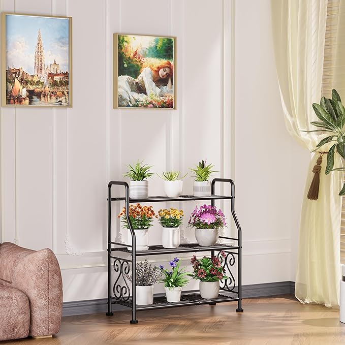 - 【Large Capacity Black Display】Holds 3+ plants per tier (9+ total) on 11.4" deep shelves. Ideal for tall herbs, flowers and bonsai. Elegant black finish complements any decor.