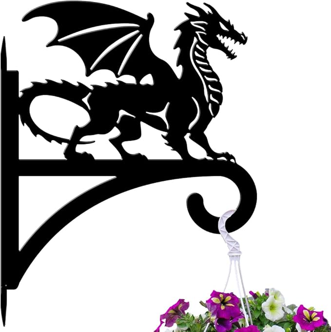peacoblue Iron Plant Hangers Hooks for Outdoor Indoor Hanging Plants Flower Fern Pots Lantern Bird Feeder,11.8"x15.1" Weather Resistant Metal Wall Holder for Porch Garden Farmhouse(Dragon)