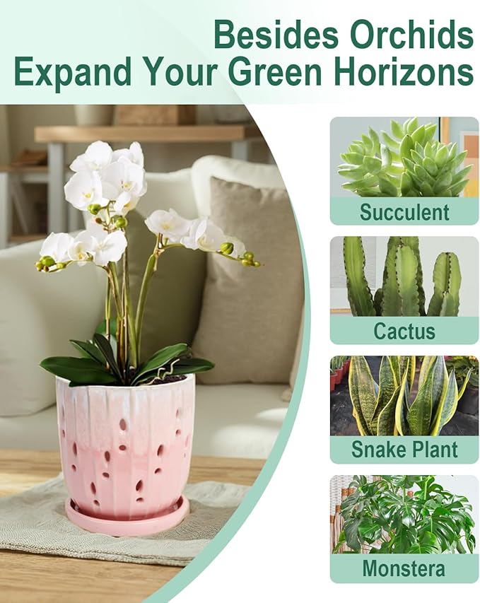 - 【Versatile and Durable】Orchid Pot with holes, this planter is ideal for orchids, succulents, cacti, ferns, and indoor/outdoor plants. The glazed finish boosts outdoor durability, while its sophisticated style elevates any setting