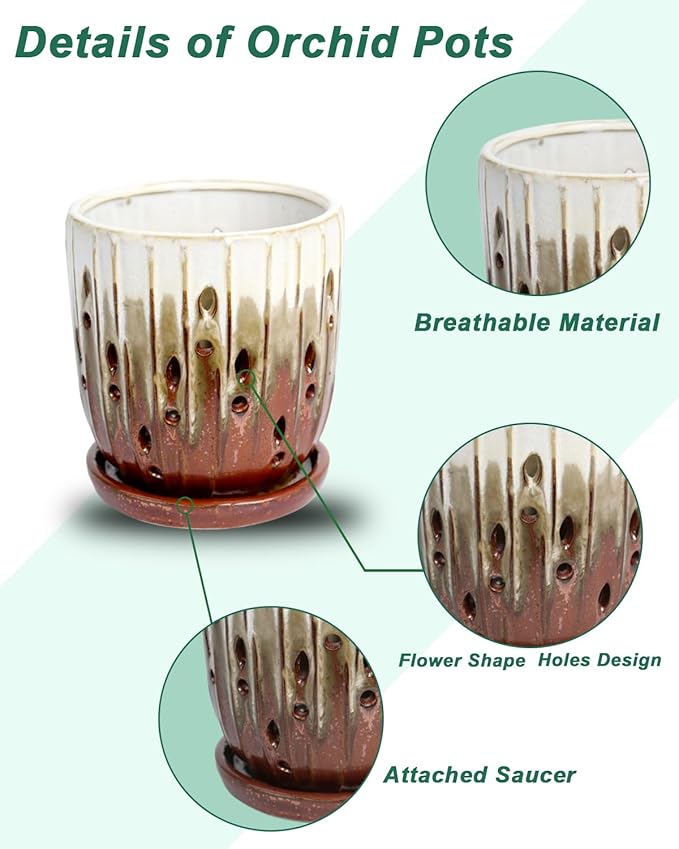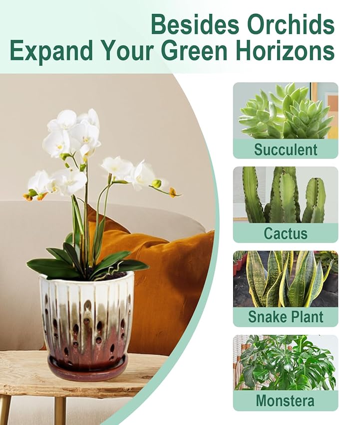 - 【Versatile and Durable】Orchid Pot with holes, this planter is ideal for orchids, succulents, cacti, ferns, and indoor/outdoor plants. The glazed finish boosts outdoor durability, while its sophisticated style elevates any setting