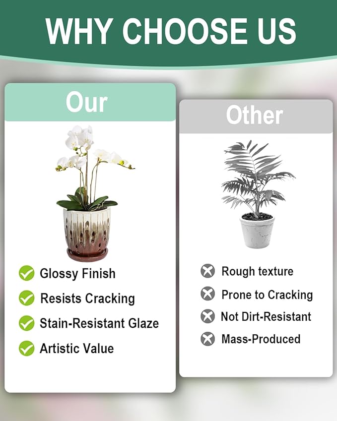 - 【Quality Ceramic Material】Crafted from premium high-fired ceramic, this orchid pot delivers lasting durability with a scratch-resistant glossy glaze that adds sophisticated elegance