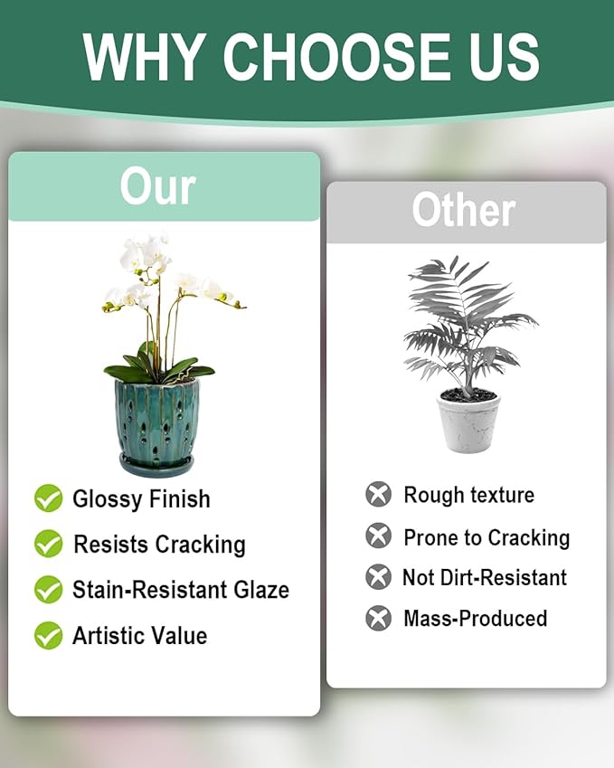 - 【Versatile and Durable】Orchid Pot with holes, this planter is ideal for orchids, succulents, cacti, ferns, and indoor/outdoor plants. The glazed finish boosts outdoor durability, while its sophisticated style elevates any setting