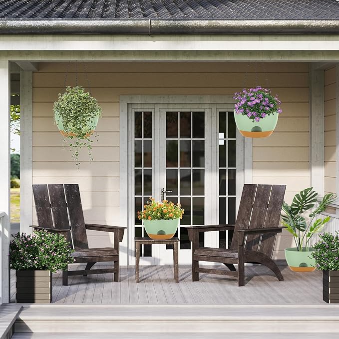 - 【Package Content】12 Inch Self-Watering Plastic Flower Pots x 2,Chain rack x 2,these Planters are easy to install and suitable for Hanging in various locations such as Balconies, Windows and Gardens