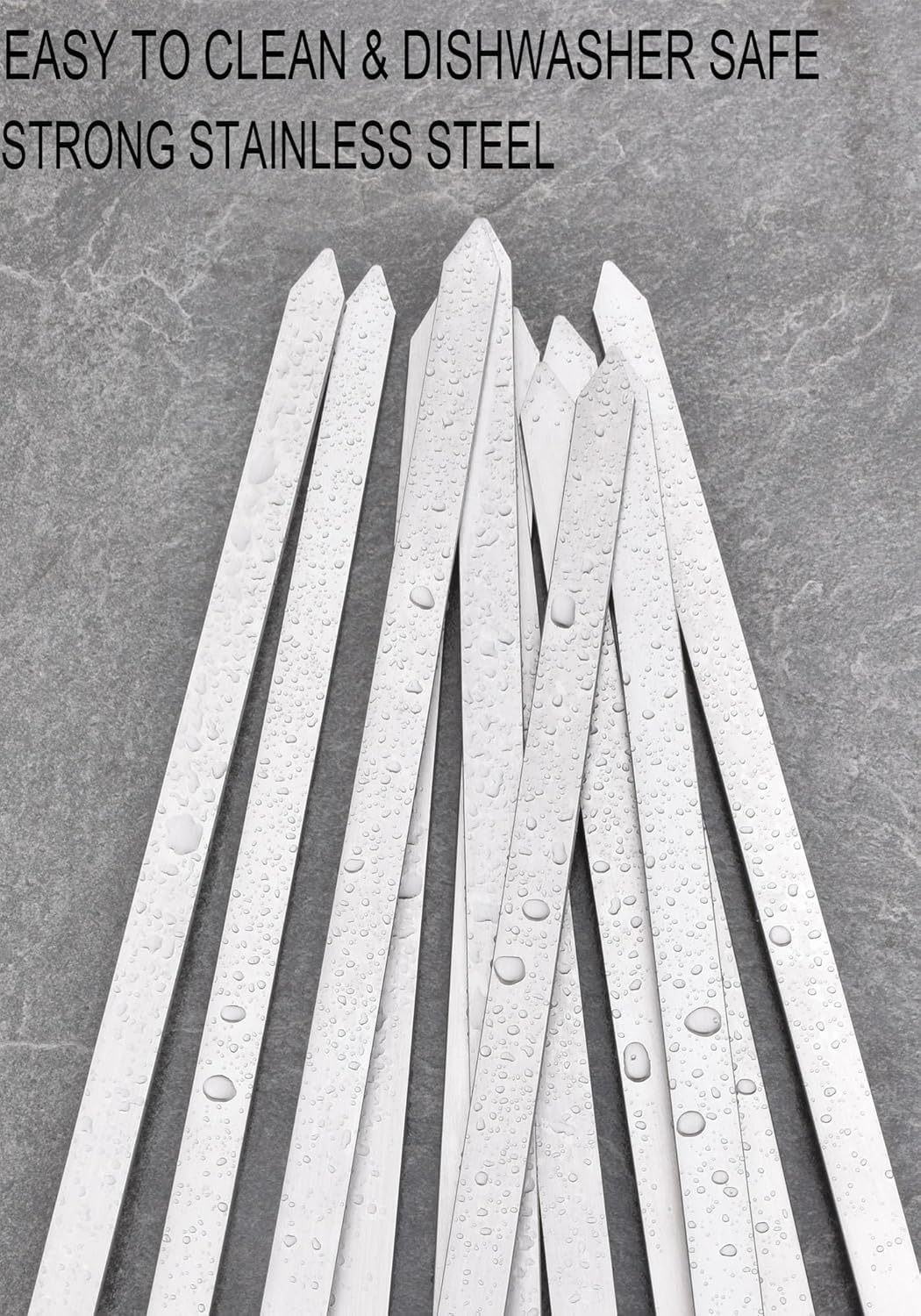 - Flat Skewers-These kabob skewers are designed to be flat in order to keep your food from moving or spinning while being grilled.With these long grilling skewers each piece of meat is cooked evenly thanks to the skewers flat design;