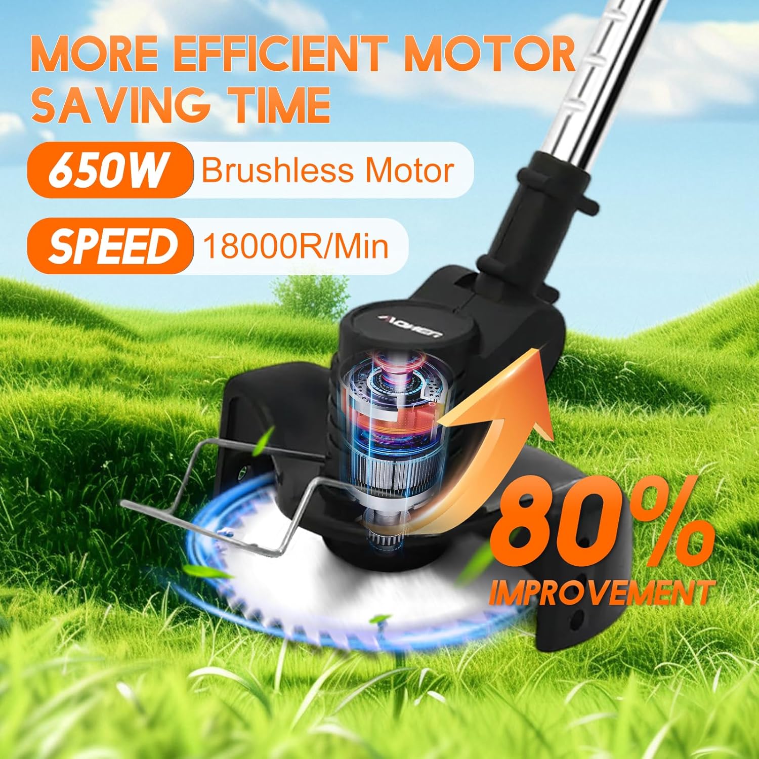 - Powerful 18,000 RPM Motor: Equipped with a high-torque pure copper motor, this electric trimmer delivers 18000 RPM for efficient cutting without overheating. Tackle thick shrubs, weeds, and grass effortlessly—no gas, no cords, just reliable power