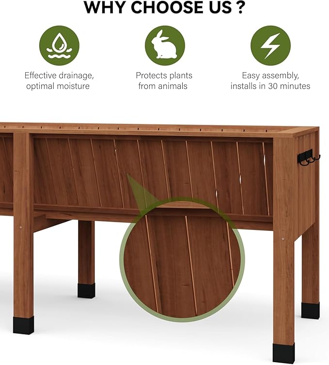 - Resilient Material: Crafted from high-quality natural natural fire wood, this garden bed features reinforced thick panels for superior durability and long-lasting performance, ensuring years of reliable use in outdoor spaces.