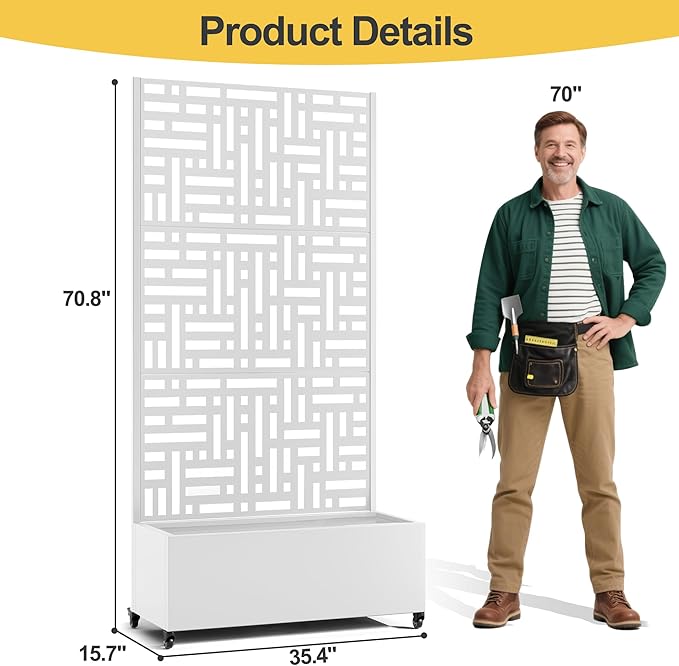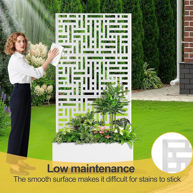 - Suitable for Various Environments This planter with trellis is ideal for gardens, balconies, patios, and greenhouses, perfect for growing flowers, fruits, vegetables, and herbs. It also serves as an privacy planters for patio, creating a tranquil space. Ideal for beautifying your area or enhancing privacy.